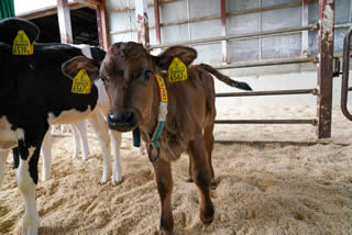 - 素直な牛さんたちに搾乳の機械を取り付けます